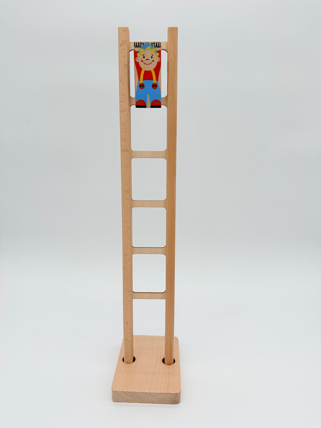 The Clown on a Ladder wooden toy brings joy and active fun to children aged 3 and up. As the cheerful clown climbs the ladder, it playfully tumbles down, captivating little ones with its lively motion. This delightful toy is just right for small hands to grasp and enjoy hours of playful tumbling excitement.