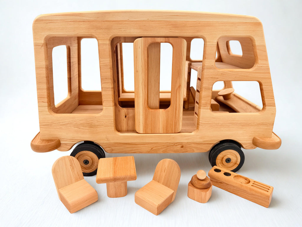 The Drewart Wooden Camper Van is a sturdy, eco-friendly toy built for endless imaginative journeys. With its generous size, it’s perfect for dolls, teddy bears, and treasures to ride along.