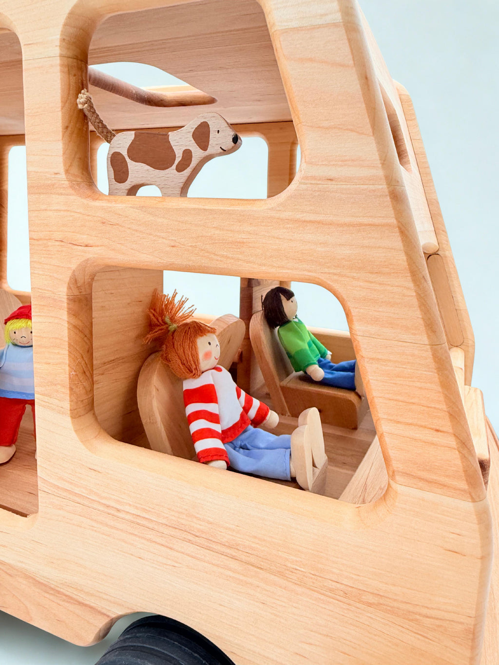 Younger children will love giving their toys a ride or sitting on top to “drive,” while older kids can send doll families on epic road trips and backyard adventures. Crafted in from sustainably sourced wood and finished with natural oils, this Polish-made beauty is safe, durable, and designed to last for generations of play.
