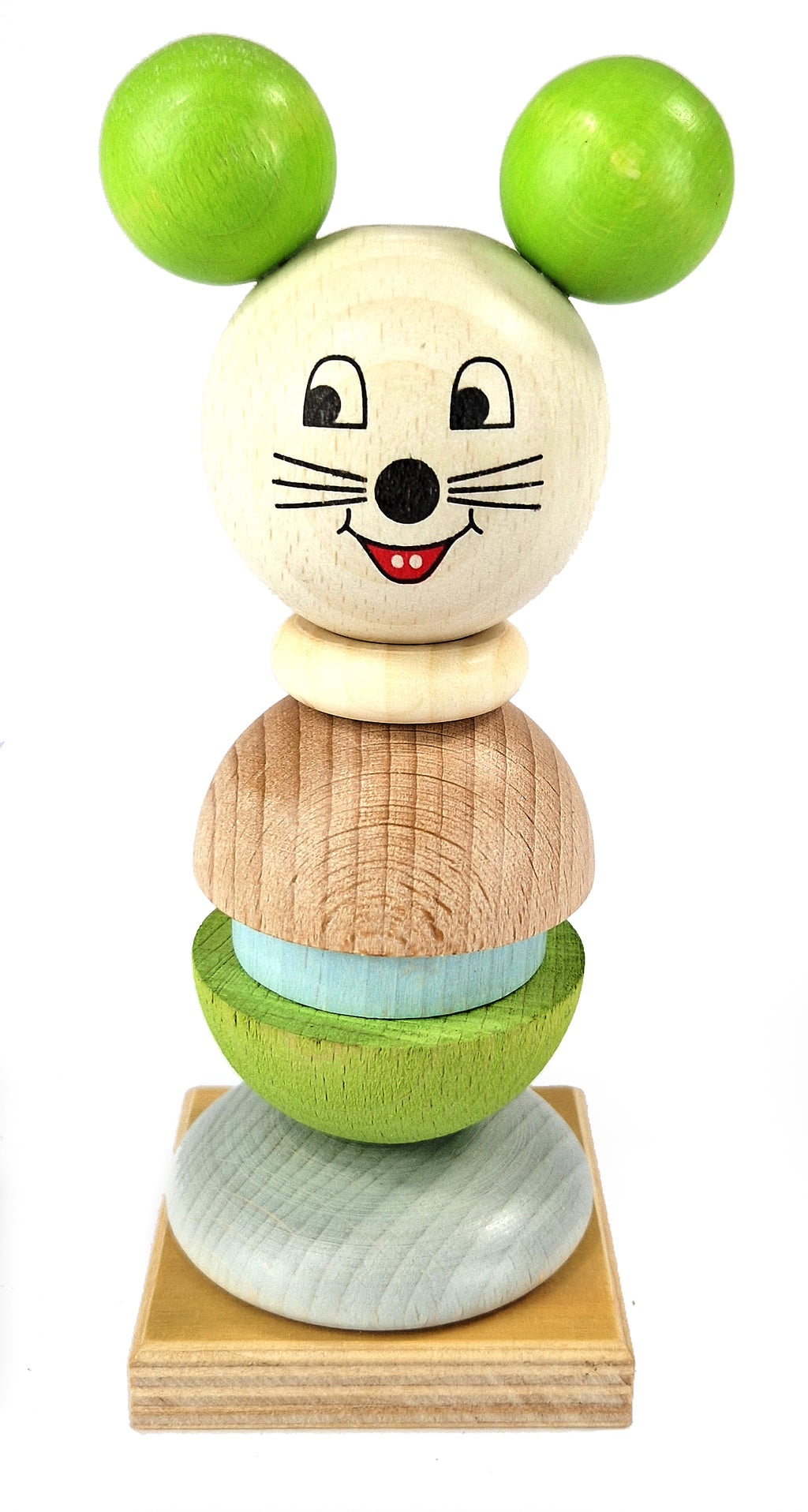 This 7-piece wooden stacking tower is a classic toy. The rings are easy for little hands to grasp and help children develop coordination and fine motor skills while learning to sort by size and colour.
