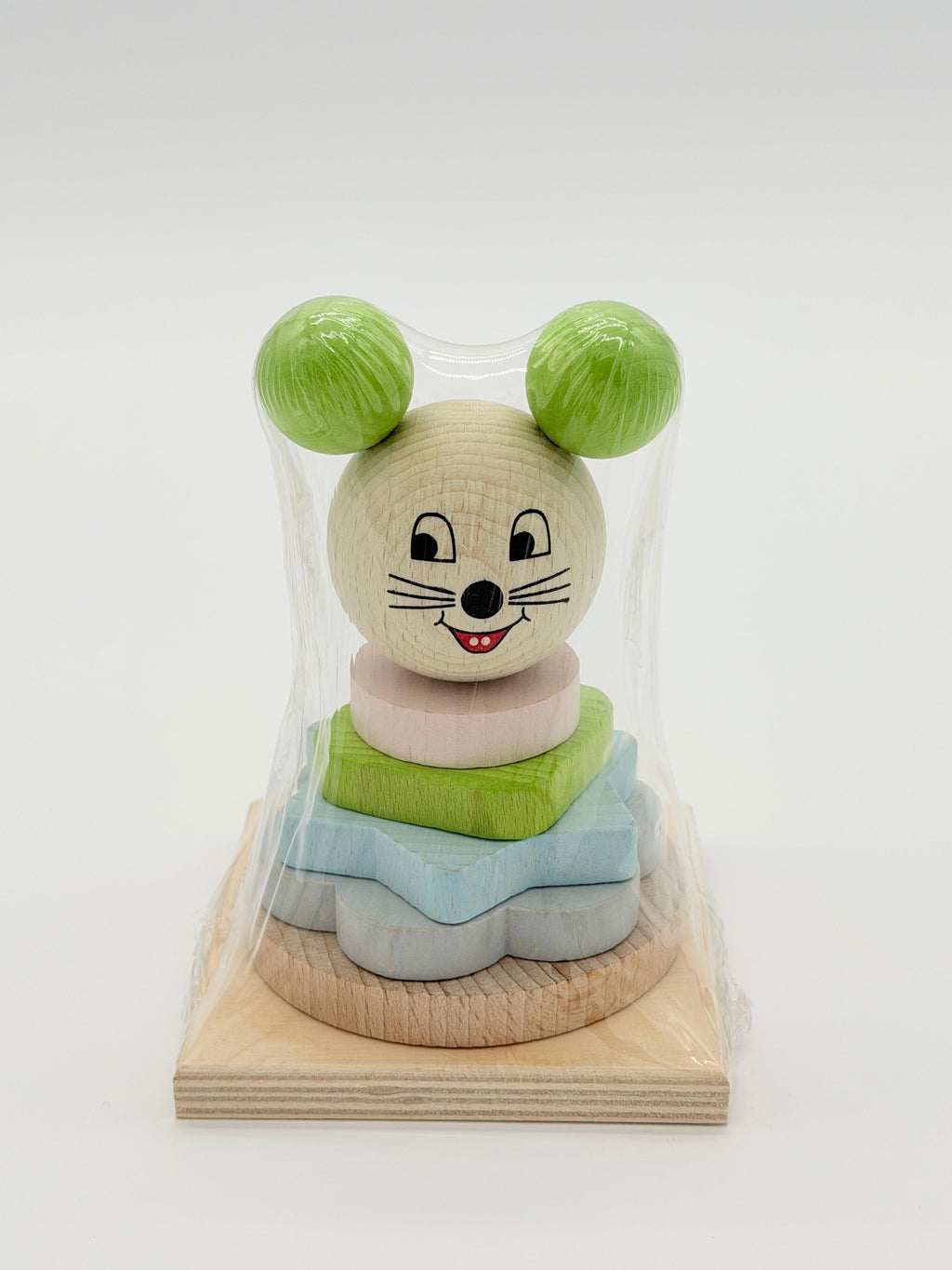 This 7-piece wooden stacking tower is a classic toy. The rings are easy for little hands to grasp and help children develop coordination and fine motor skills while learning to sort by size and colour.
